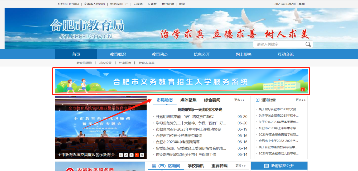 入口1:合肥市教育局网站 (http://jyj.hefei.gov.cn)