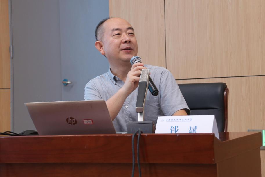 随后,中国科学技术大学理学教授钱斌以《高举起新的旗帜,用社会主义文化铸魂育人》为题开展专题讲座。他将内容分为五个层次:第一,强调在教育战线高举习近平文化思想旗帜的根本遵循;第二,阐释如何传承“走遍”世界的中华优秀传统文化,增强文化底气;第三,讲述弘扬“有烟火气”的革命文化,让红色基因贴近生活、深入人心;第四,探讨发展“有引领力”的社会主义先进文化,保持与时俱进的文化创造力;第五,聚焦于用中国特色社会主义文化铸魂育人,落实立德树人根本任务。整场讲座层层递进、环环相扣,为全体教师提供了深刻的理论指导和实践启示。
