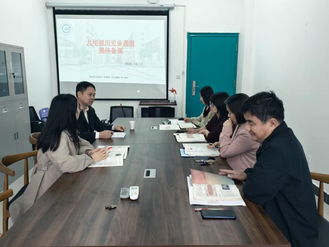 郑德铸在参与九年级历史备课组集体研讨时,对学校集体备课模式给予了高度评价:备课组能聚焦学情与课标,实现资源共享、智慧共生,为高效课堂奠定坚实基础。 同时他也提出了优化建议:强调备课时要进一步深化学情分析,让教学设计更贴合学生认知规律,为打造高效课堂奠定更为坚实的基础。