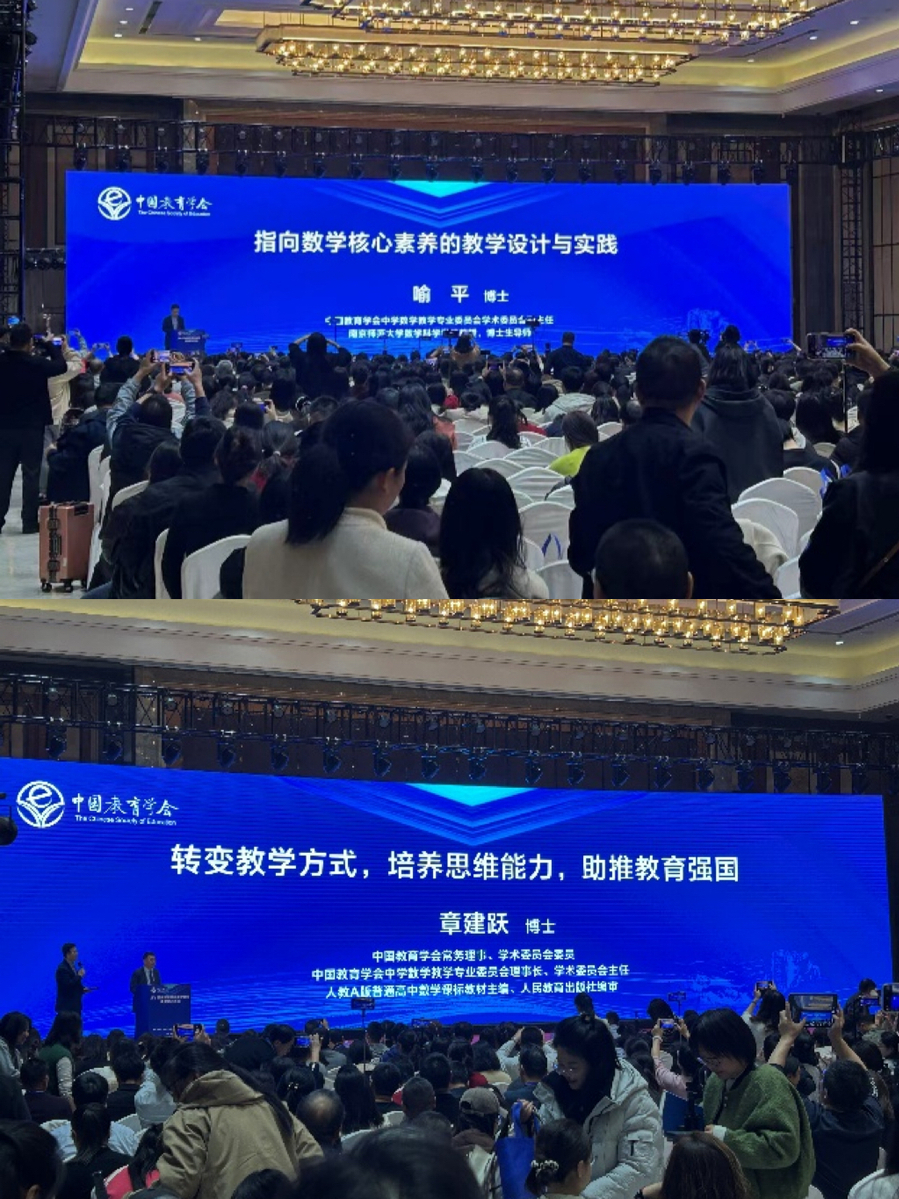学术交流干货满满。12日晚间,学会理事暨学术委员会全体会议顺利召开,就活动组织安排与展示相关事宜进行了说明。15日上午的大会报告环节,鲍建生、喻平、章建跃等专家围绕“高层次数学思维的任务设计”“指向数学核心素养的教学设计与实践”等主题分享前沿理念,为参会教师提供了理论指引与实践参考。此外,参会者在分会场围绕课例设计、教学策略等展开热烈研讨,碰撞出思想的火花。