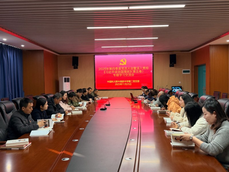 为深入学习贯彻党的二十届四中全会精神,强化理论武装,11月25日上午,中国科大附中高新中学第二党支部召开了第四季度党员大会暨深入贯彻《习近平谈治国理政》(第五卷)专题学习交流会。会议由党支部书记颜家梅主持。