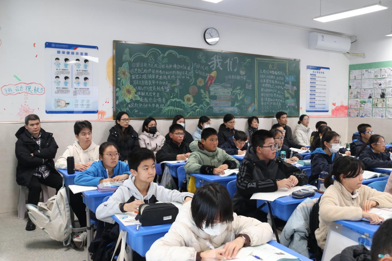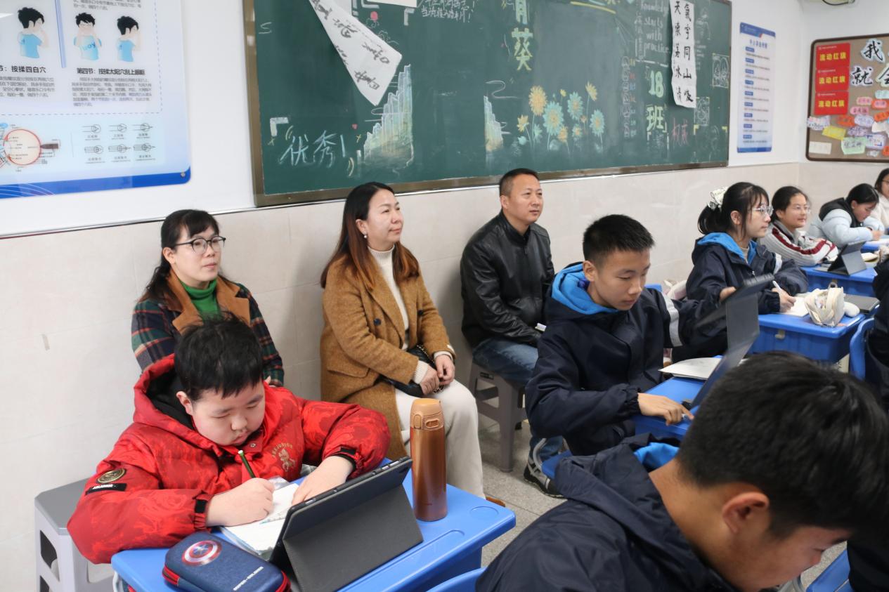 课堂上,家长化身沉浸的观察者与温情的陪伴者,见证课堂推进的每一个细节:老师们讲解条理清晰、语言生动,灵活运用多种教学方法激发学生学习兴趣;学生们在老师的引导下积极投入,举手踊跃、讨论热烈,小组合作与自主探究已成常态,课堂氛围充满着思辨与活力。家长们从中直观而真