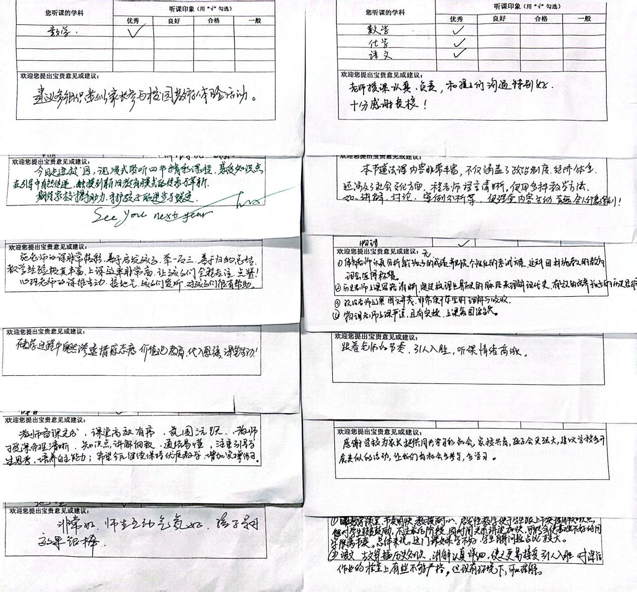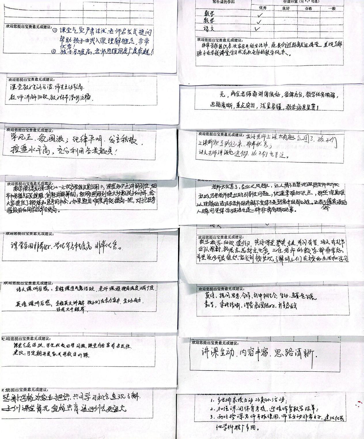 课后,“心声长廊”与各科办公室成为了情感与智慧交融的空间。家长们提笔认真写下真实反馈,“精彩”“氛围好”“代入感强” 成为高频关键词,不少家长点赞老师讲解细致、课堂生动有趣,并期待此类活动能常态化举办。