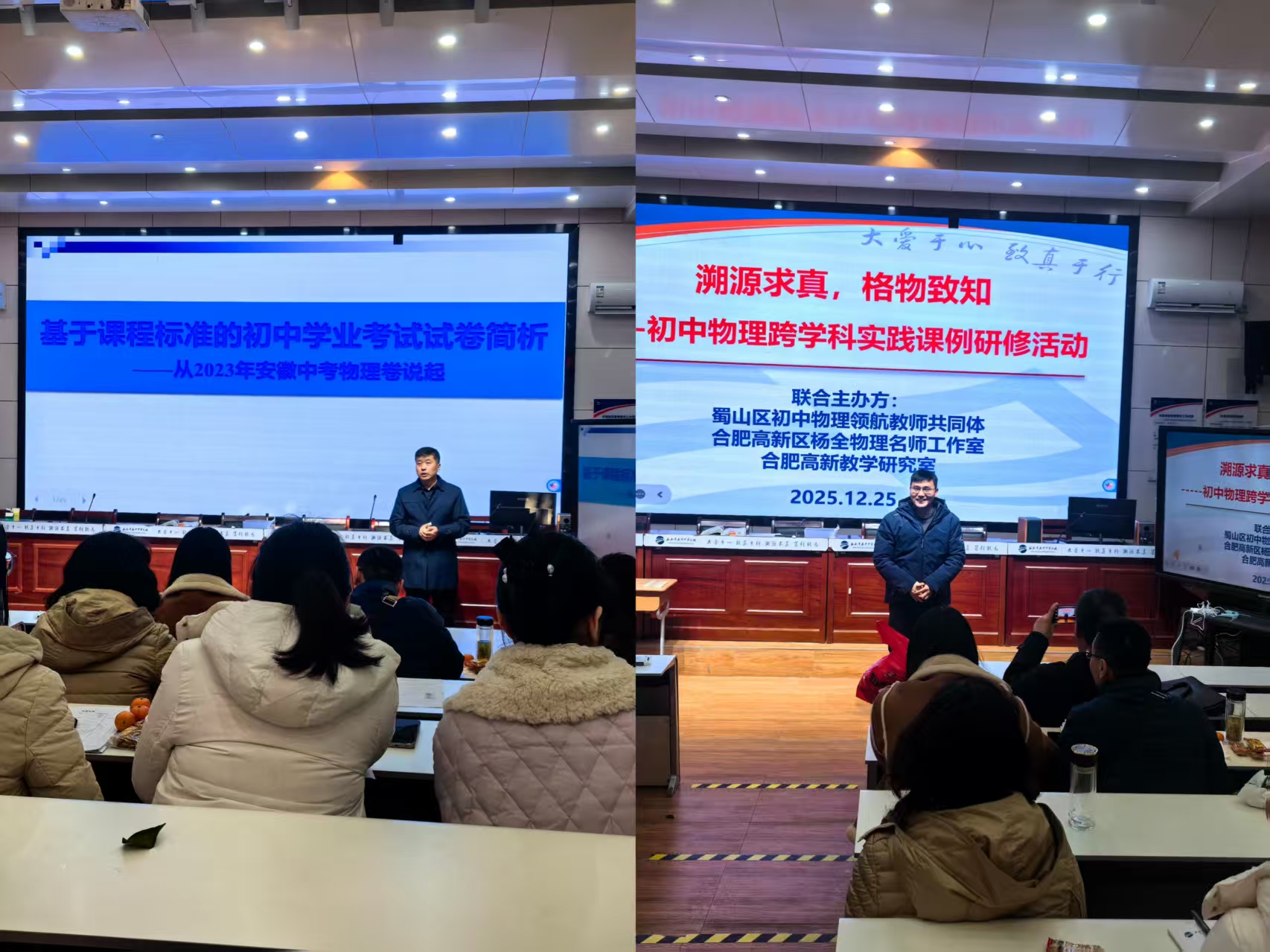 为积极探索跨学科融合教学的有效路径,充分发挥名师工作室的示范、引领与辐射作用,2025年12月25日下午,由合肥市杨全名师工作室联合蜀山区初中物理领航教师共同体共同组织的跨学科实践课例研修活动,在合肥市五十中学东校西园校区顺利举行。