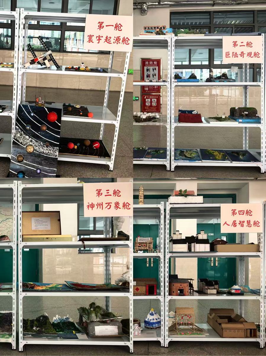活动摒弃传统展陈模式,创新性地以“地理方舟”为叙事主线,构建了“寰宇起源”、“巨陆奇观”、“神州万象”、“人居智慧”四大主题探索舱。这一完整的设计体系,由工作室主持人宋洁老师带领全体成员,历经多次研讨打磨而成,旨在引导学生从宇宙尺度到人居智慧,完成一次系统的地理认知建构。从宏观的太阳系运行、中国航天成就模型,到微观的各地民居生态智慧展示,每一个环节都融入了工作室所倡导的“做中学、用中学、创中学”的教学理念。