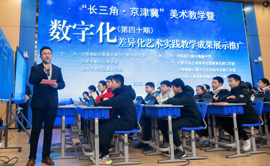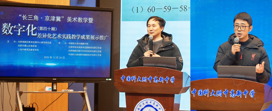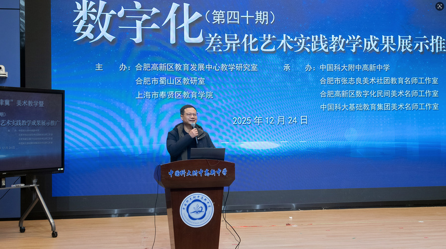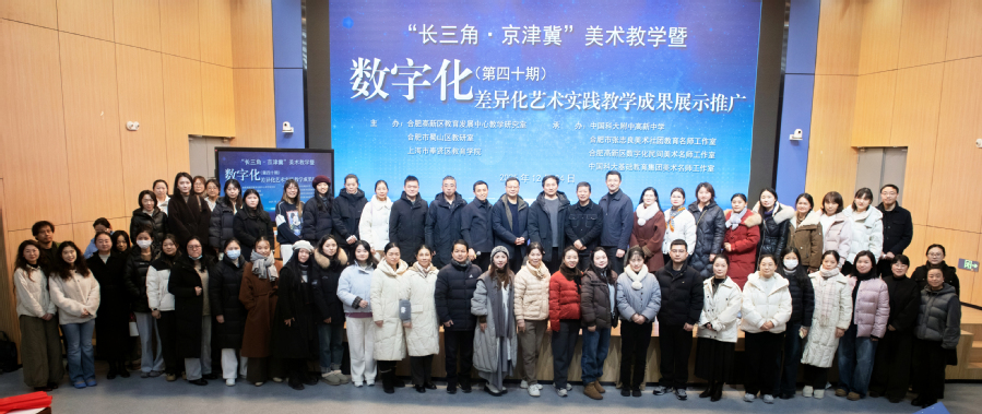 12月23日至24日,“长三角·京津冀”美术教学暨数字差异化艺术实践成果展示推广活动在中国科大附中高新中学成功举办。活动由合肥高新区教育发展中心教学研究室、合肥市蜀山区教研室、上海市奉贤区教育学院及合肥市张志良美术名师工作室联合主办。本次活动围绕“数字赋能·差异化艺术实践”主题,汇聚上海、天津、合肥三地美术教育专家、教研员与骨干教师,共同探索数字时代美育教学新路径。