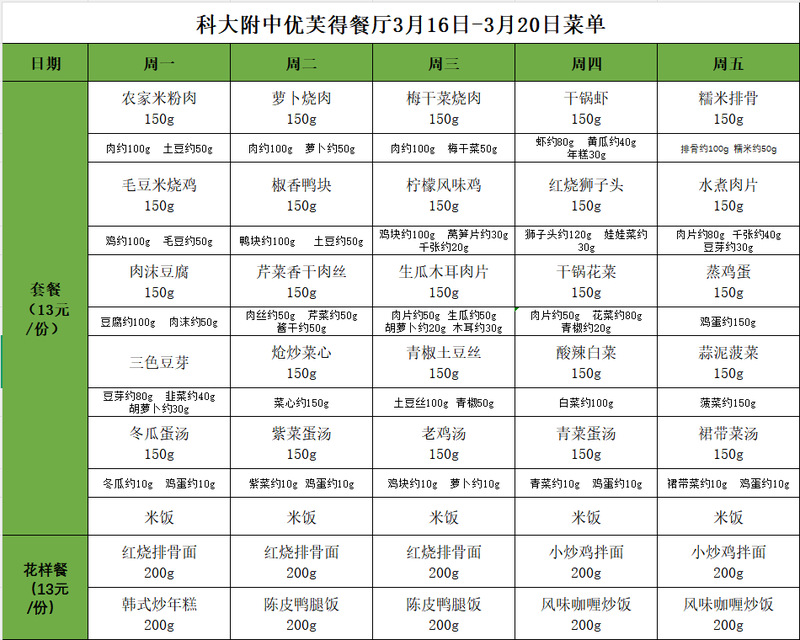 中国科大附中高新中学2025-2026学年第二学期第三周菜谱(3月16日至3月20日)