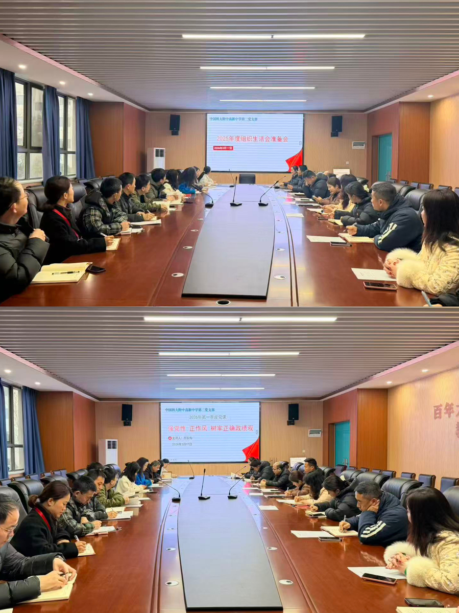 为深入学习贯彻党的二十届四中全会精神,严格落实党内政治生活制度,2026年3月19日下午,中国科大附中高新中学第二党支部在司南楼二楼会议室召开了2025年度组织生活会暨民主评议党员大会。会议由支部书记颜家梅主持,全体党员参加,校党总支书记杨全到会指导。