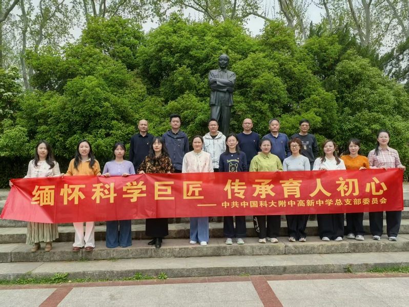 四月芳菲,春意正浓;清明时节,追思绵绵。为深切缅怀科学巨匠、传承弘扬科学家精神,筑牢党员教师“为党育人、为国育才”的初心使命,4月6日上午,中共中国科大附中高新中学总支部委员会组织党员教师代表前往中国科学技术大学东校区,开展“缅怀科学巨匠,传承育人初心”主题党日活动。中国科大附中高新中学党总支书记杨全带队,党员教师统一佩戴党徽,以庄重肃穆的姿态参与此次兼具追思与育人意义的党建活动。