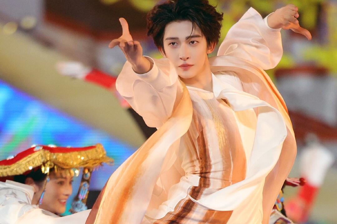 2026年跨年晚会,他演绎《壁上观》,敦煌壁画与飞天舞碰撞,绽放独特东方美学。