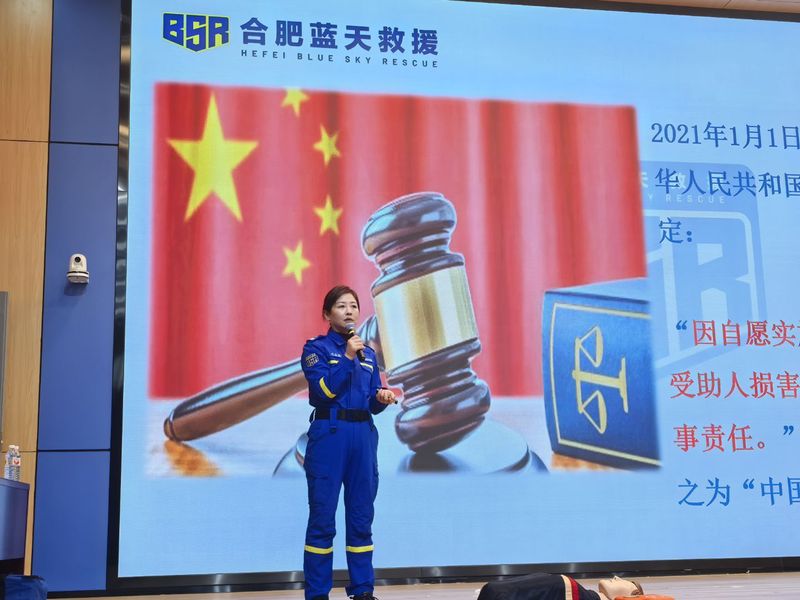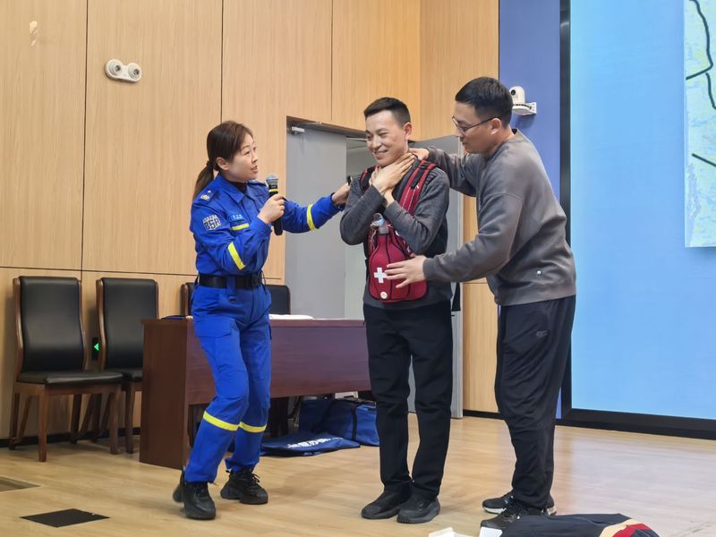 培训现场,吕文健讲师结合自身丰富的救援经验和校园常见应急场景,采用理论讲解与实操演示相结合的方式,重点围绕海姆立克急救法和心肺复苏(CPR)两项核心技能展开培训。针对海姆立克急救法,她详细讲解了其适用场景、操作原理,明确了成人、儿童不同人群的操作差异,强调了“快速、精准、有力”的操作要点——救援者站在患者身后,双臂环绕腰腹部,握拳置于脐和剑突之间,快速向上向内压迫,通过肺部气体形成气流排出异物。同时她还演示了自救方法,让教师们全面掌握气道异物梗阻的应急处置技巧。